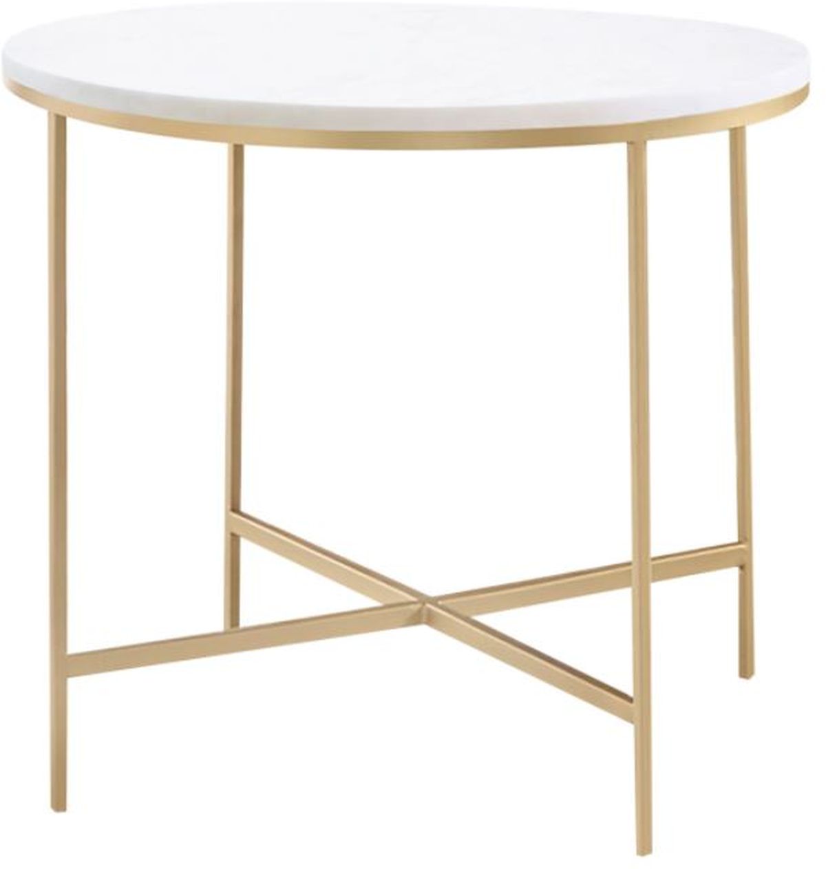 Smooth and sleek, this round end table is just what you need for your table lamp or decor. The round marble tabletop is a gorgeously elegant upgrade for this piece, featuring hues of white and handcrafted in India. The stylish and thin table legs offer top-notch function. Meanwhile, the striking gold finish of the metal legs provides a finishing touch. If only every end table offered such simplistic design combined with elegant aesthetics.