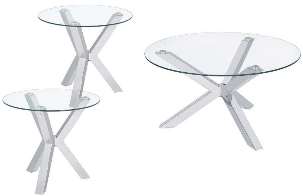 The Coaster® Kenzie 3-Piece Tempered Glass Top Occasional Table Set includes a coffee table and end table, both featuring sleek tempered glass tops and sturdy chrome bases. This set combines modern elegance and functionality, making it a perfect addition to any living room or contemporary space.Read More