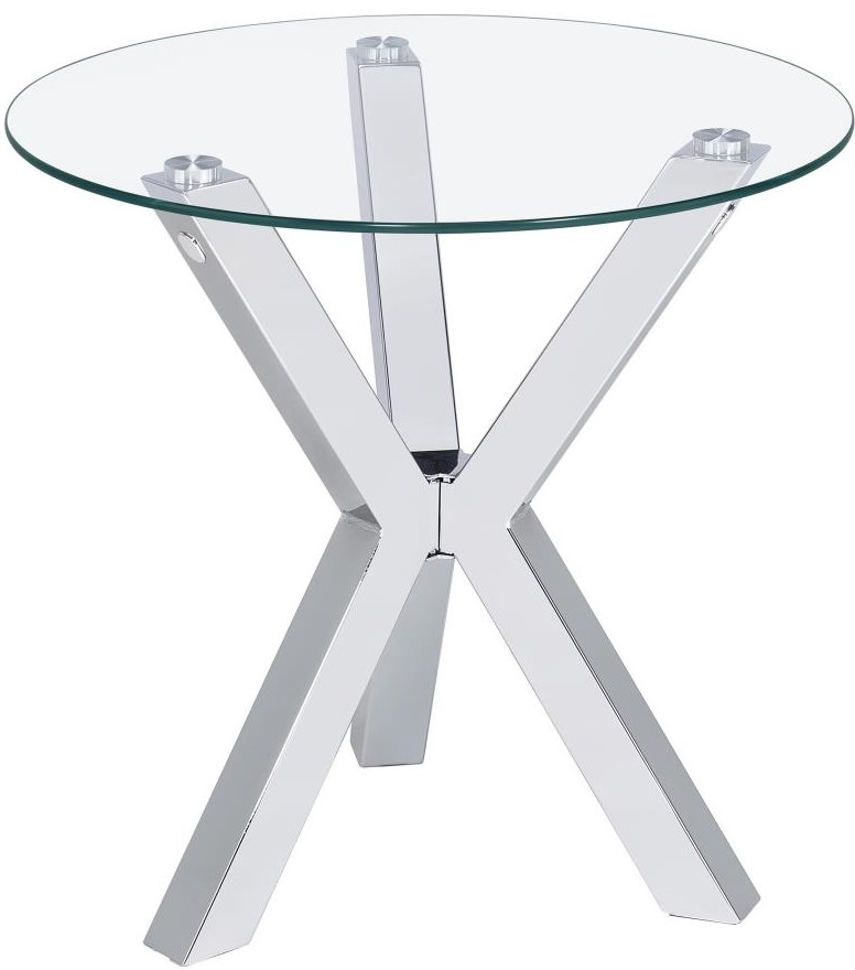 The Coaster® Kenzie Tempered Glass Top End Table with Chrome Base features a sleek tempered glass surface supported by a sturdy chrome base. Its modern design offers both elegance and durability, making it a stylish and functional addition to any living room or contemporary space.Read More