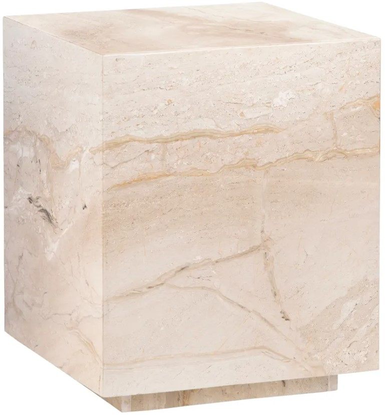 Rectangular, sculptural form showcases the marble’s beauty from every angle