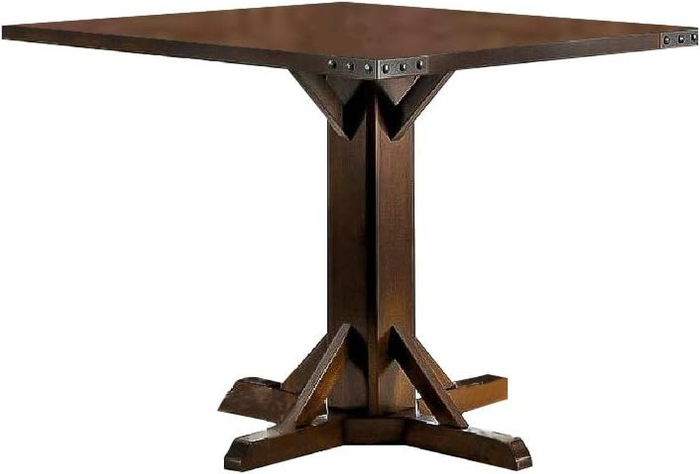 Simplistic in design but high in style, this transitional style square table features clean, lines with cozy brown cherry hues. The ivory linen seats are lined with a nailhead trim for a rustic flair that brings the farmhouse to your dining room. The pedestal base and corner rivet details complete this homey design for a look that will prove to be a hit in any dining setting.Read More