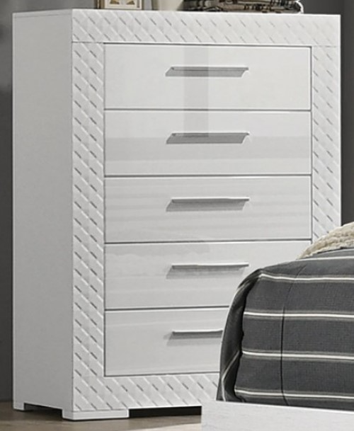 The Whitby Chest is a glam-style piece designed to add a touch of elegance to your bedroom decor. Crafted from engineered wood and metal, it features a high gloss white finish that enhances its sleek appearance.Read More