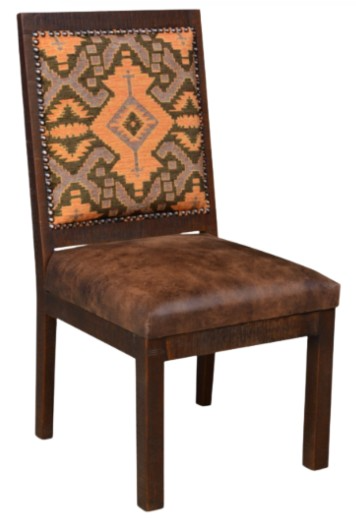 The Horizon Home® Santa Fe Brown/Orange Upholstered Dining Side Chair features a brown cushioned seat, orange-patterned upholstered backrest, and solid wood frame, it offers comfort and durability for everyday use.Read More