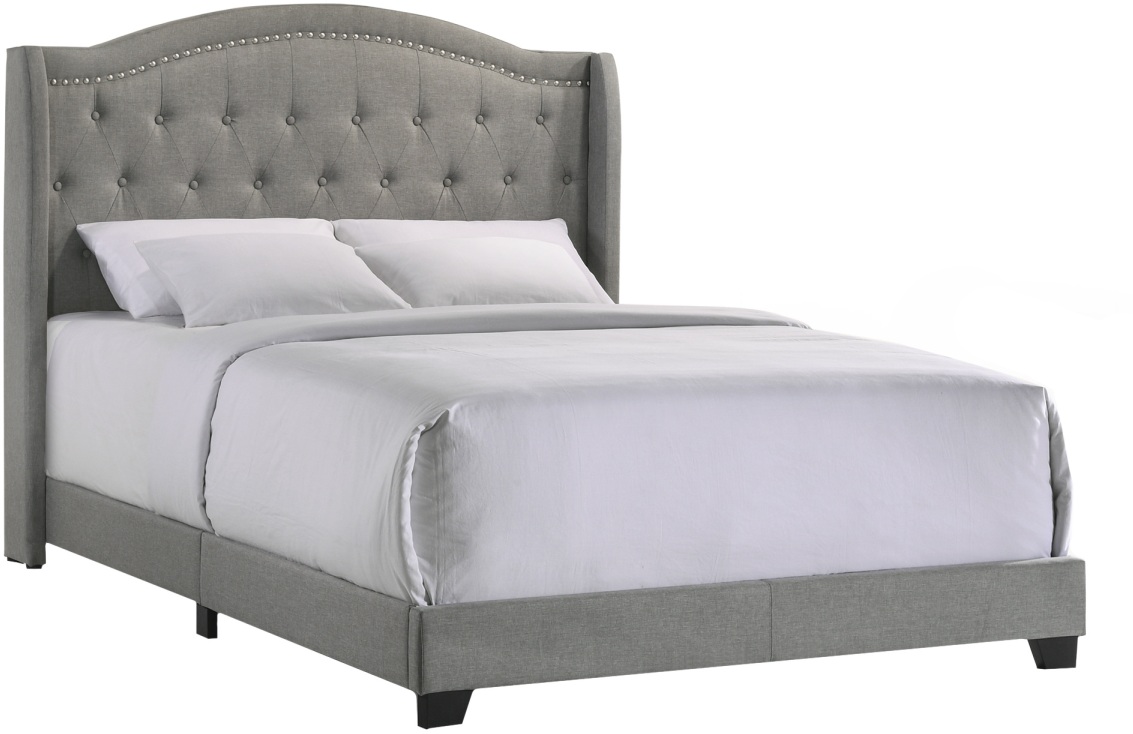 The Rhyan upholstered bed collection features a smoke fabric covering an tufted cushion, arched headboard with eye-catching matte chrome nail head accents. The poplar and rubberwood construction rounds out this collection, making it not only stylish but durable as well.Read More