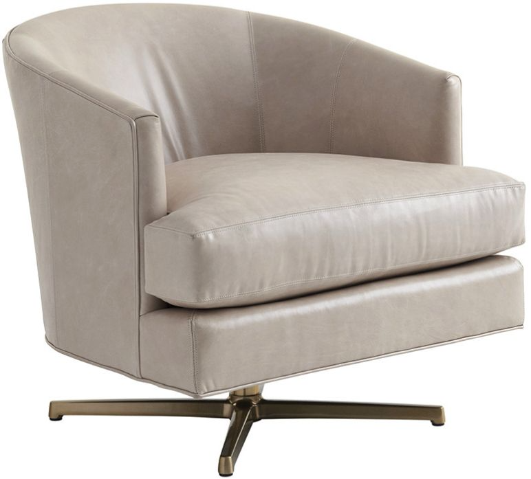 The graceful barrel-back silhouette provides remarkable comfort, and the swivel base gives a nod to modern contemporary styling. This chair is offered in three base options and is available in both leather or in fabric as 7654-11BSW. Note the B indicates the brass finished base.Read More