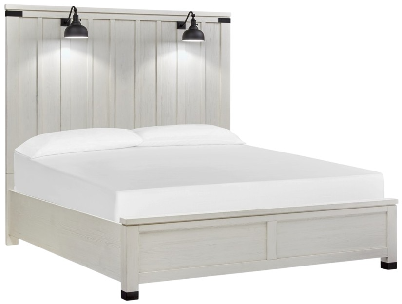 Black metal ferrules, corner brackets and forged iron hardware bring an industrial modern vibe to the craftsmen-like silhouettes. A black metal bed and a black mirror with window-pane border provide a dramatic contrast to the soft silo white finish with rub-through and distressing. Harper Springs is crafted of random-width solid pine for an authentic and casual feel. Whether you aspire to loft living or country living, the Harper Springs collection will bring your dream home to life.