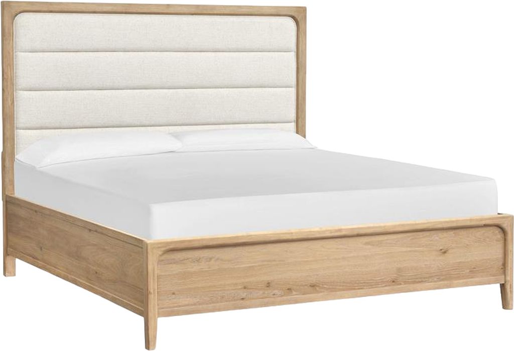 Magnussen Home® Somerset Butternut Queen Panel Bed with Upholstered Headboard features bolt-on rails, slats with support legs, and floor protectors.Read More